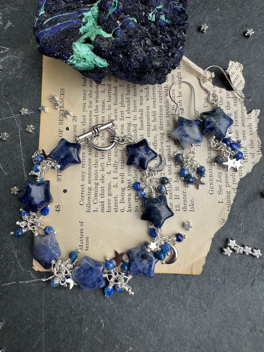 Sodalite stone stars, Lapis lazuli stone, silver metal, bracelet