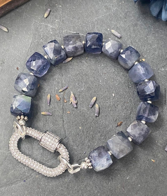 Iolite gemstone and rhinestone, silver clasp, bracelet