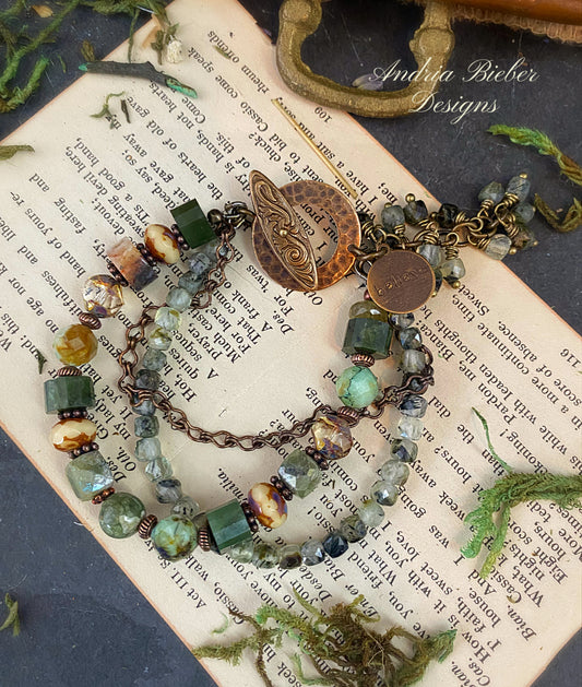 MTO- Autumn leaves. Mixed gemstone, Czech glass, bronze metal, charm bracelet.