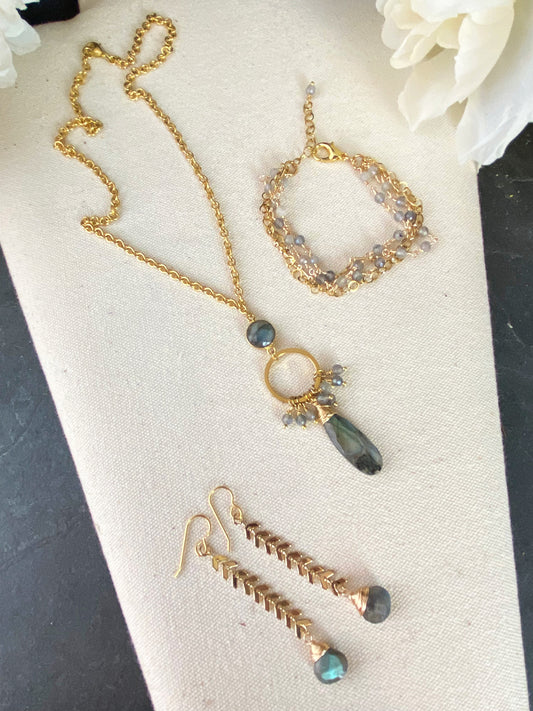 Labradorite stone, 18k filled gold metal, necklace, jewelry