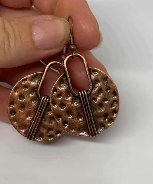 Modern drops, copper metal, hoops, earrings, jewelry.