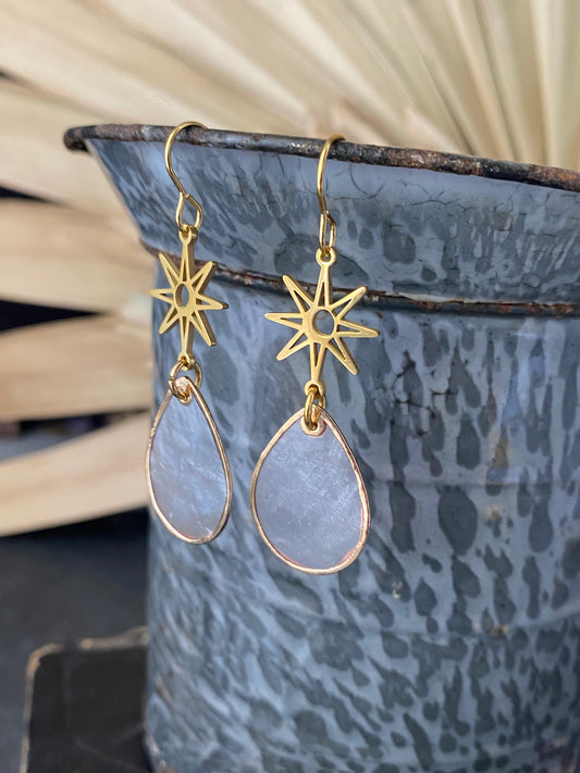 Round Lacy Star Blue Purple Iridescent with Gold Paint- 18mm