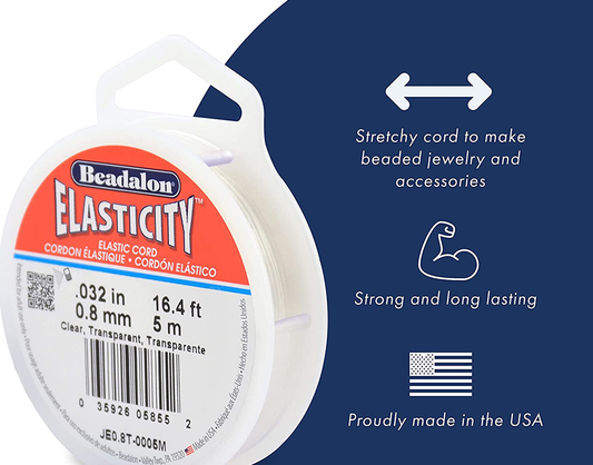 Beadalon Elasticity Stretch Cord, 0.8 mm / .032 in, Clear, 25 m / 82 ft