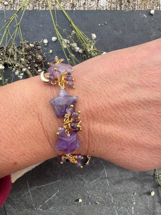 Amethyst stone stars, amethyst stone, gold metal, bracelet