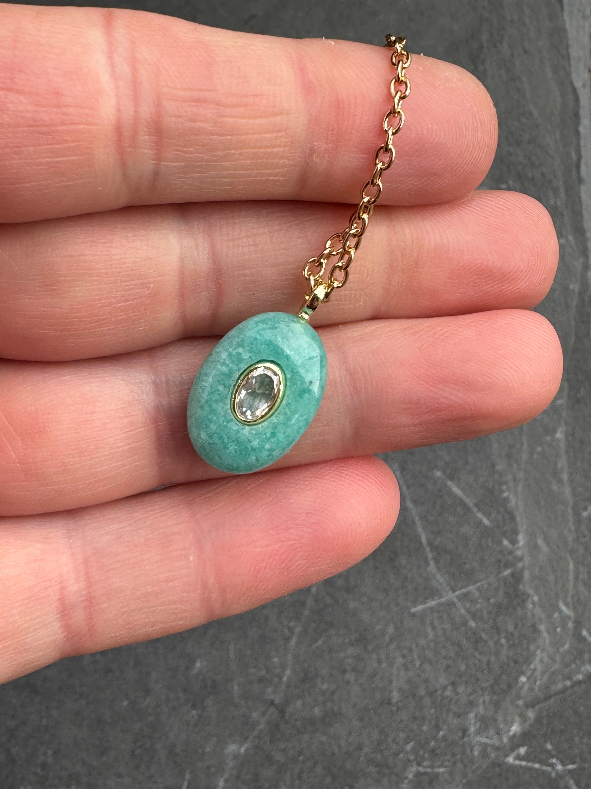 Amazonite, crystal, gold metal, drop necklace and earrings set