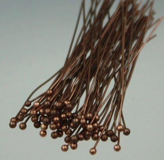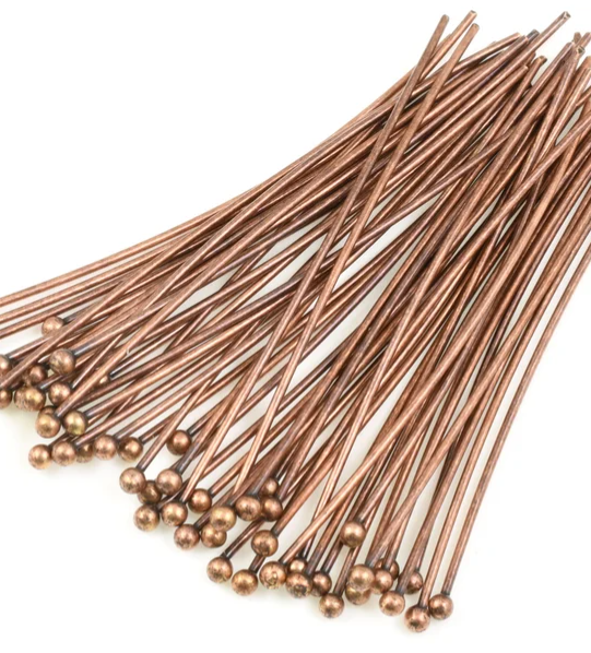 Copper Plated Brass 2 inch, 22g Ball headpins with a 2mm Ball - 100 per bag