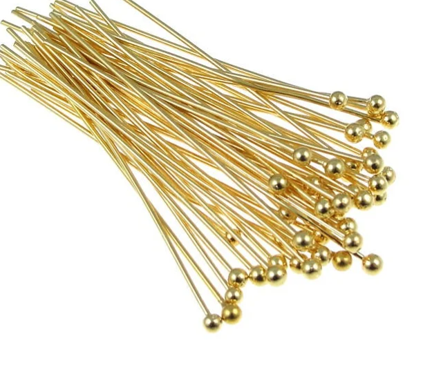 Create stunning jewelry pieces with our gold Plated Brass Ball Headpins! The soft metal of brass makes them easy to work with, and their 2 inch length and 2mm ball are perfect for securing your beads. Each bag contains 100 durable 22g headpins. These are great for wire wrapping!
